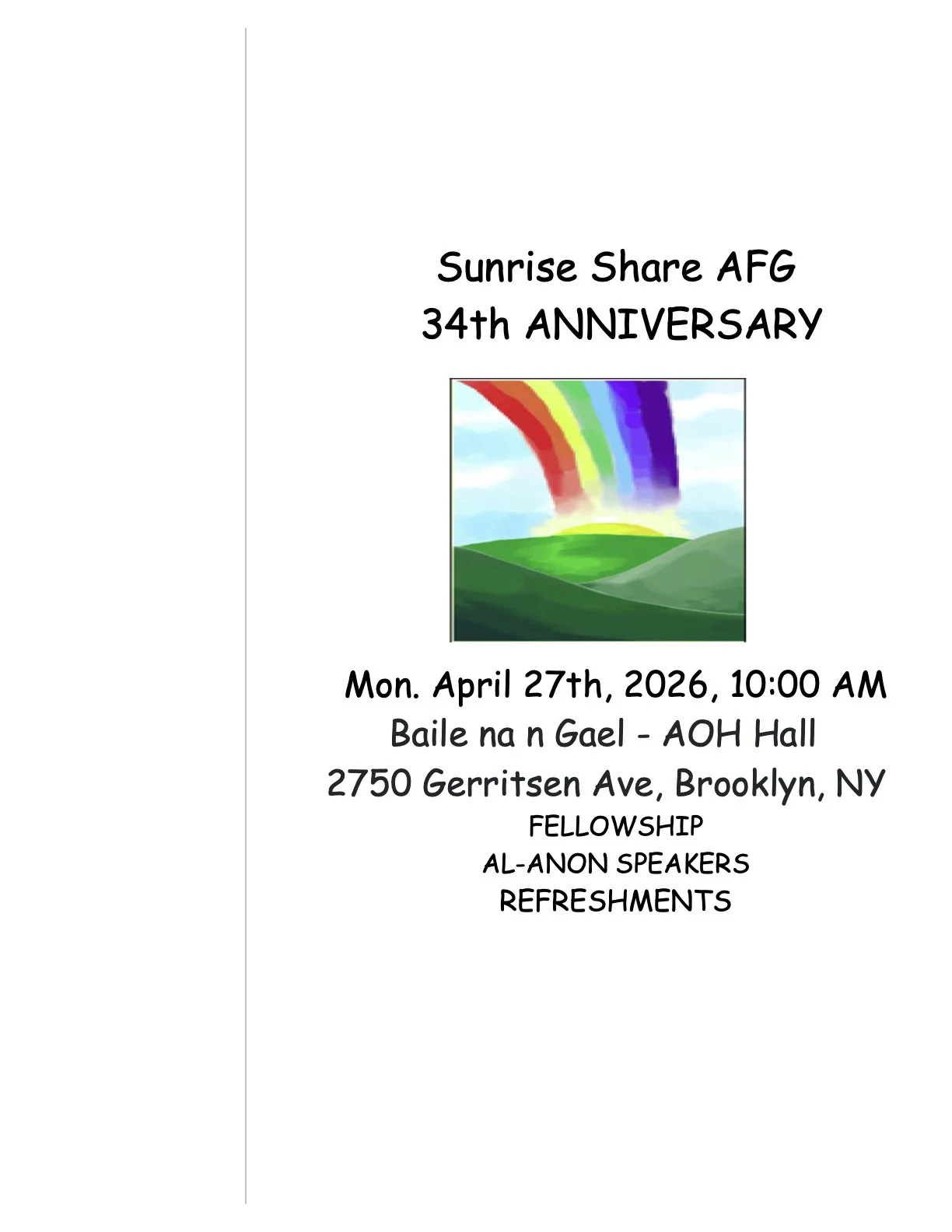 Fellowship, speakers and refreshments!